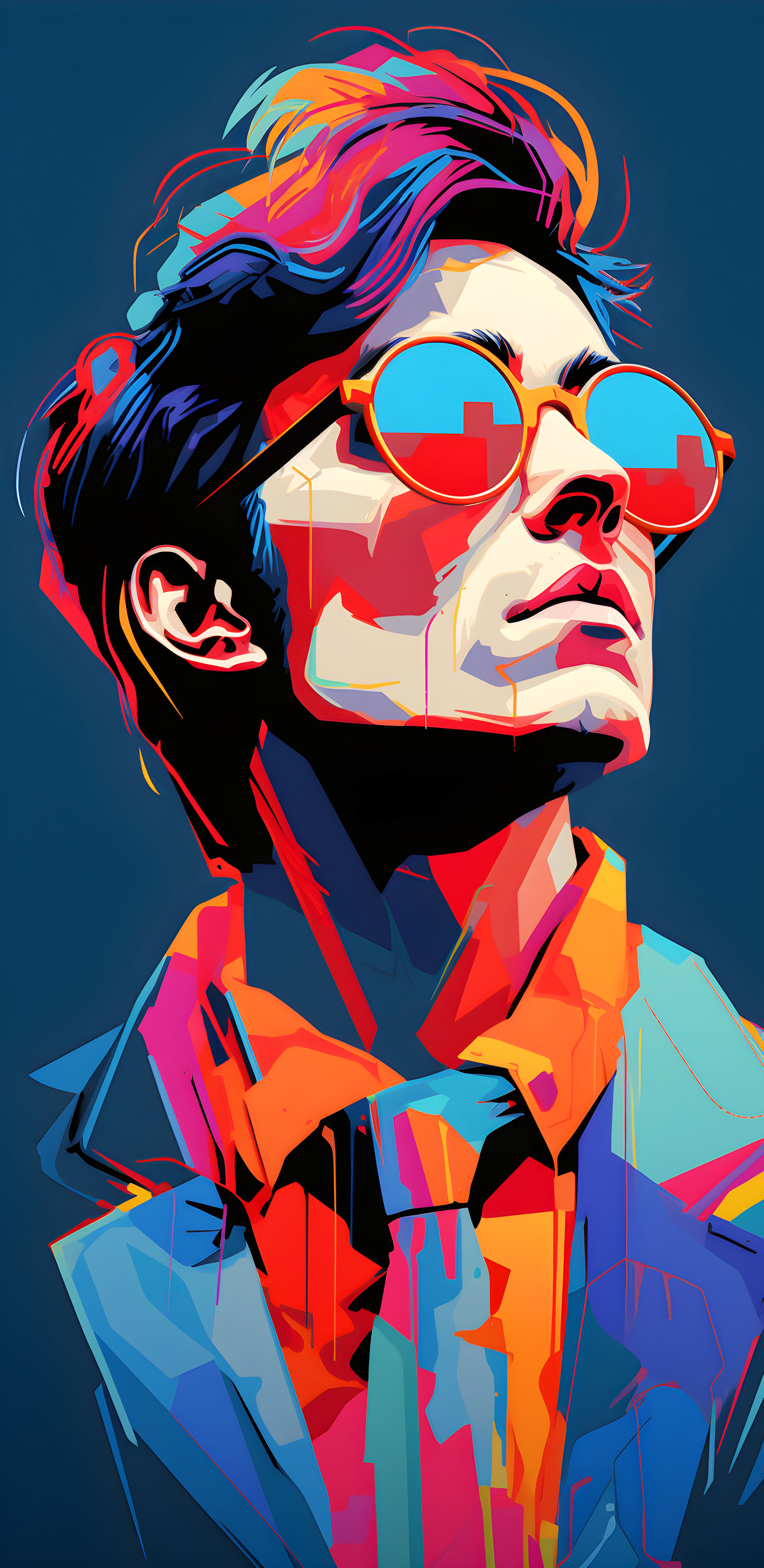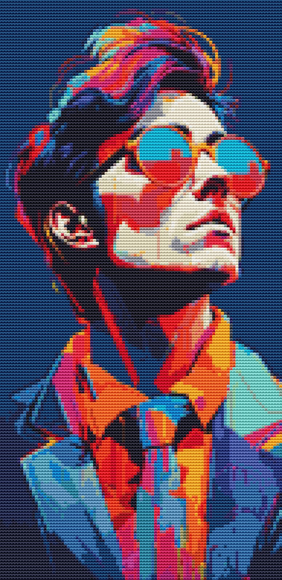 This cross stitch pattern depicts a picture of a colourful man wearing sunglasses.
