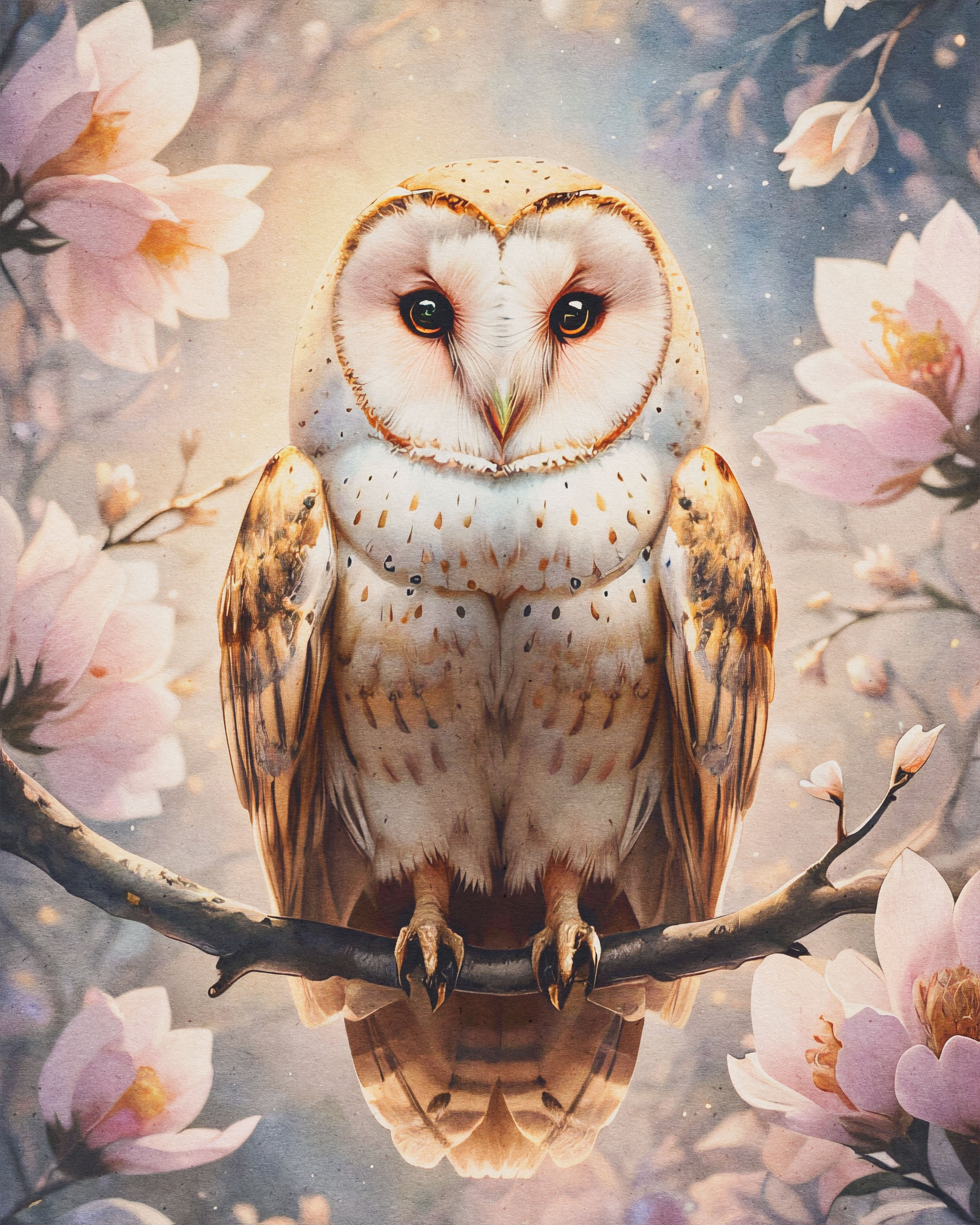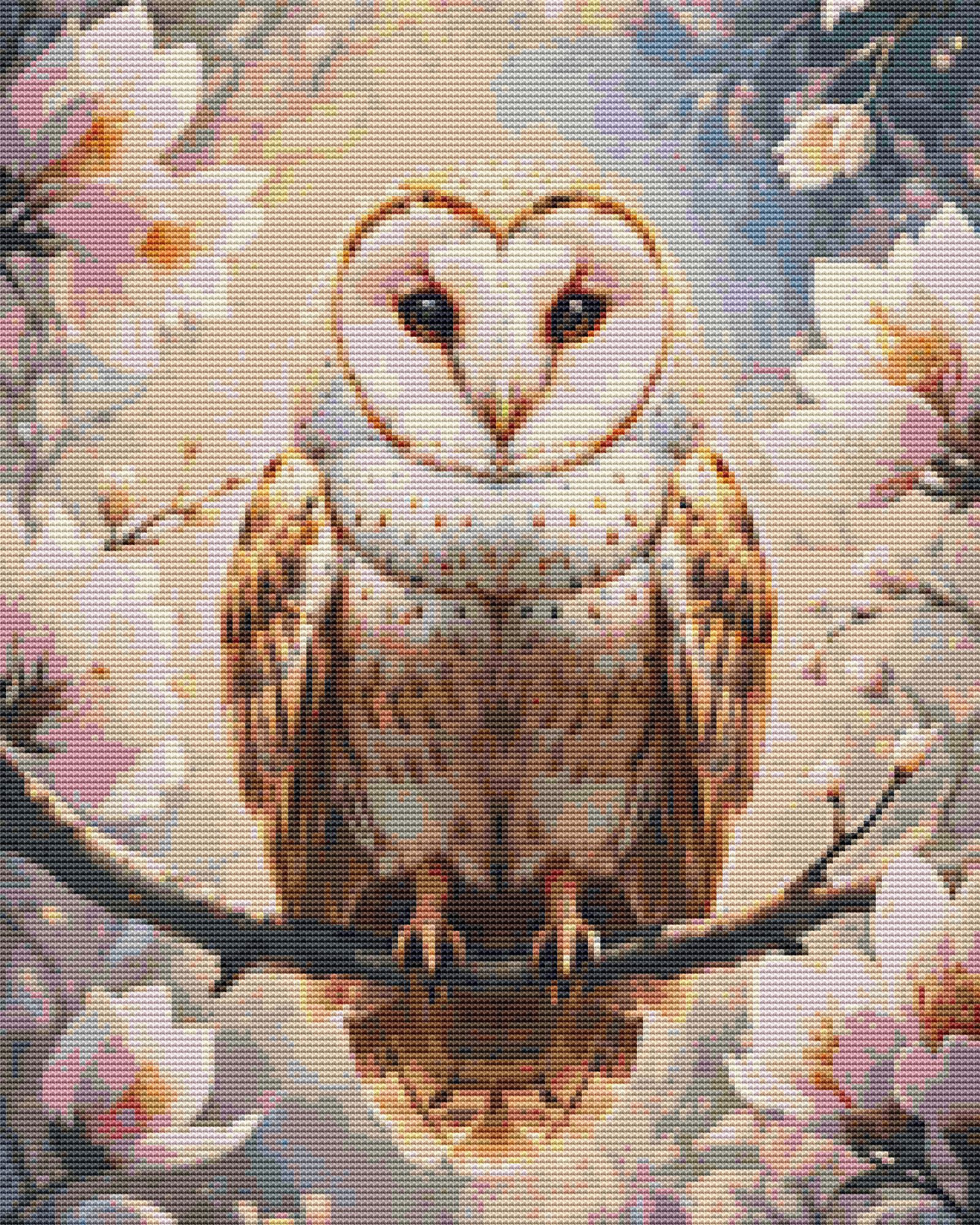 This cross stitch pattern depicts a pretty picture of a barn owl.