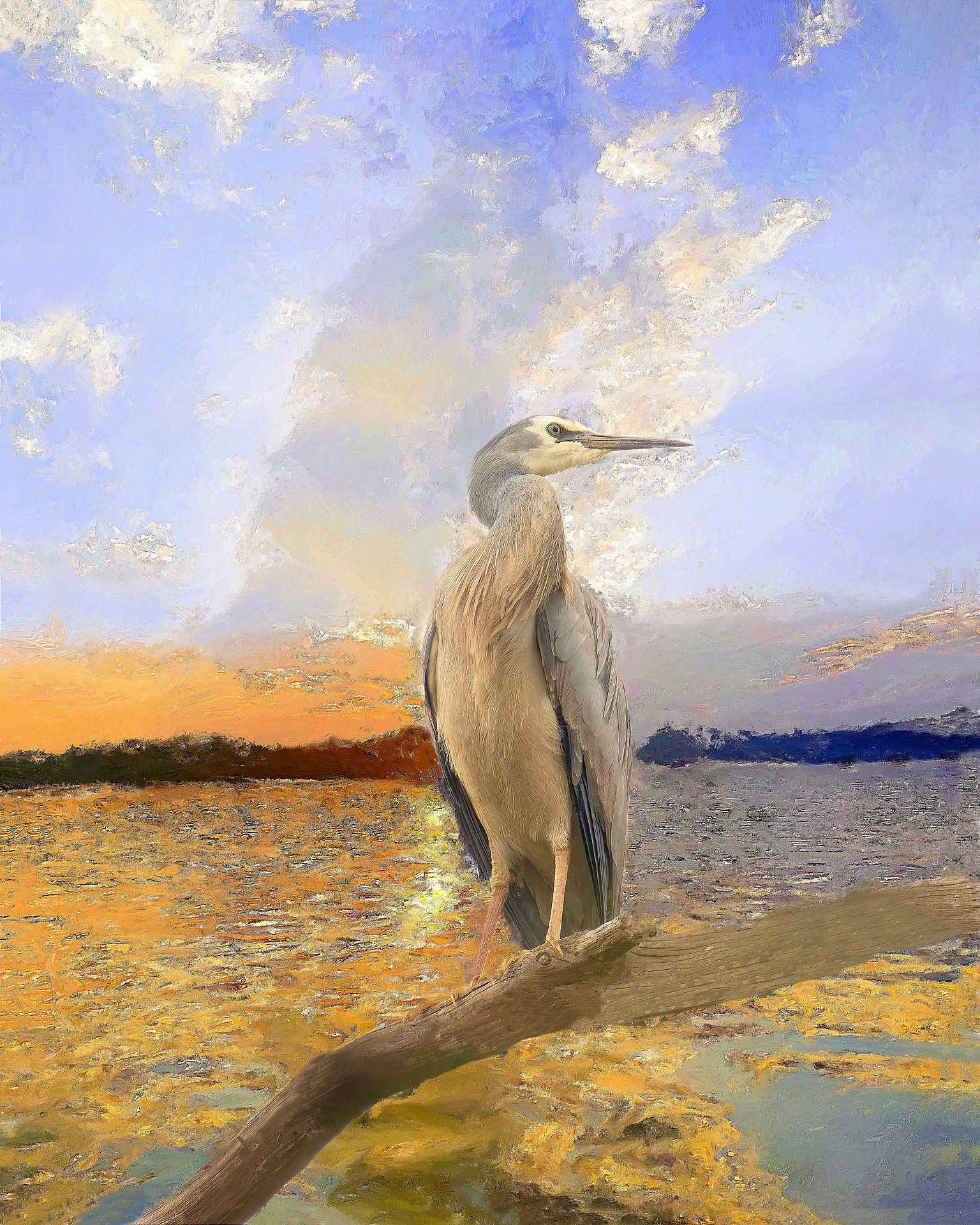 This cross stitch pattern depicts a picture of a heron sat on a log.