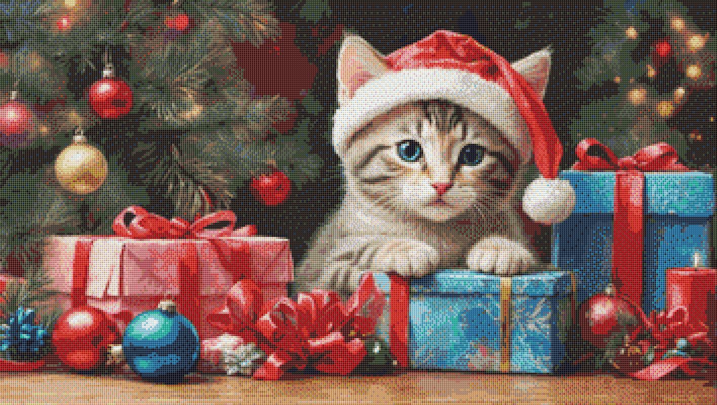 Cross Stitch Pattern Christmas Kitten.