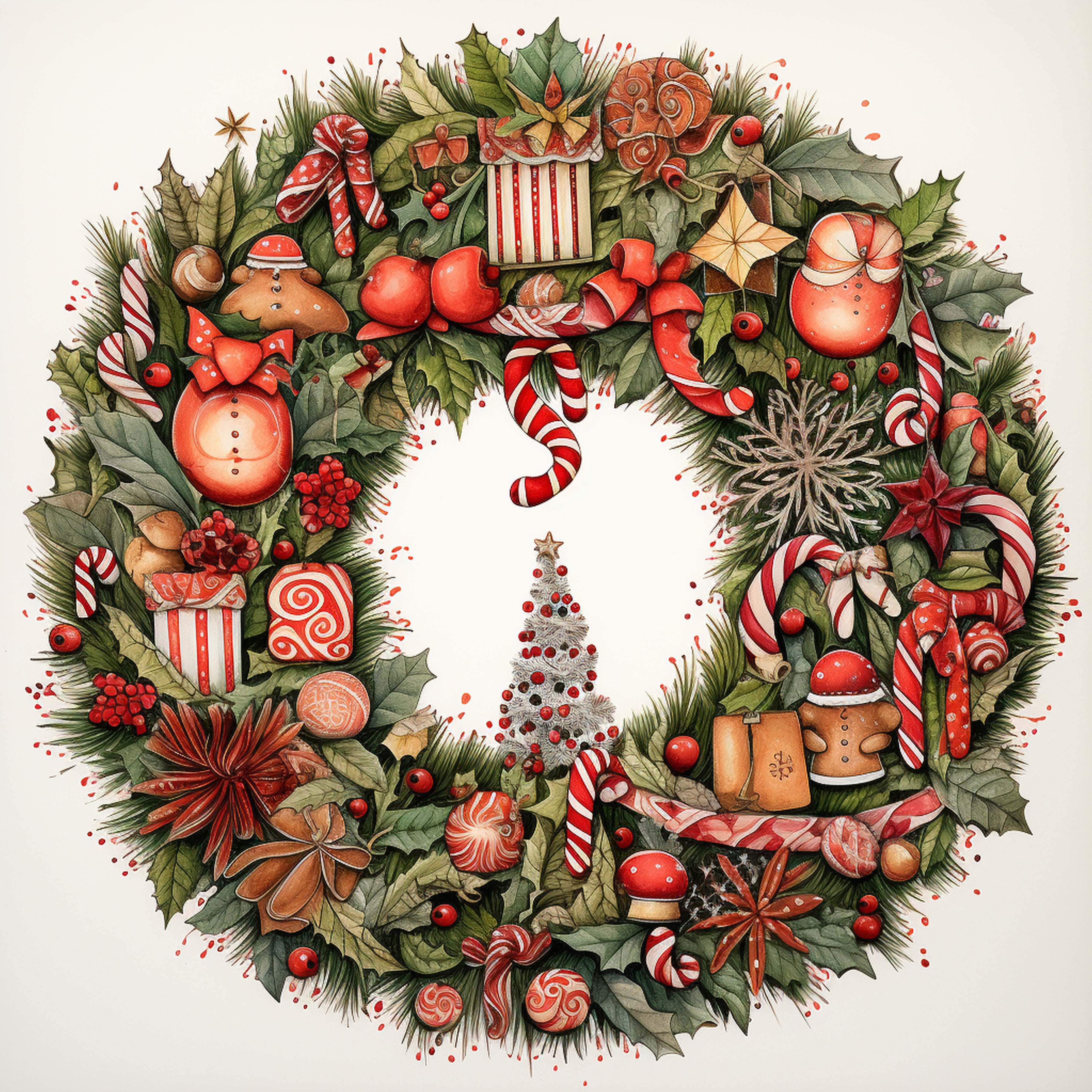 This cross stitch pattern depicts a picture of a stunning wreath for Christmas.