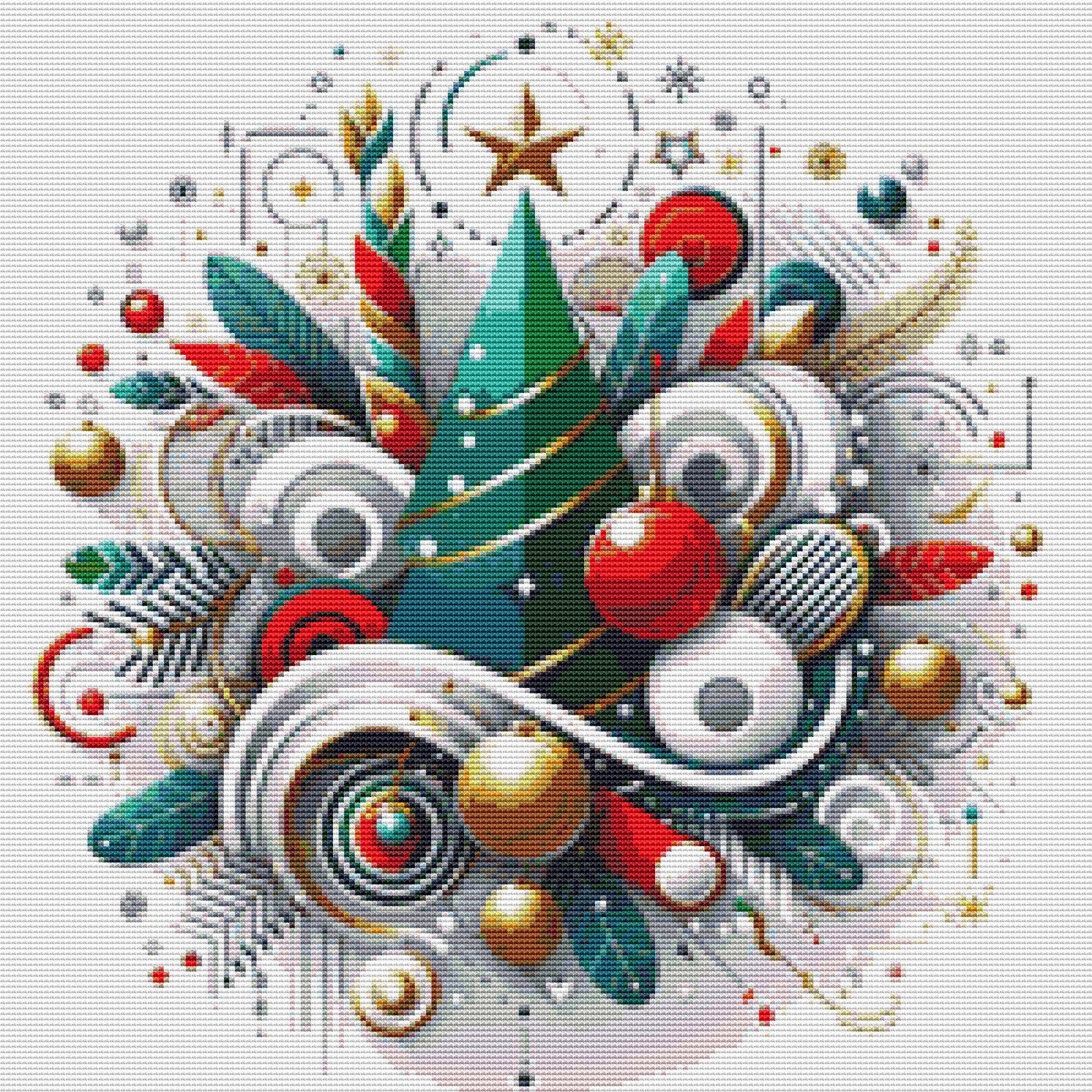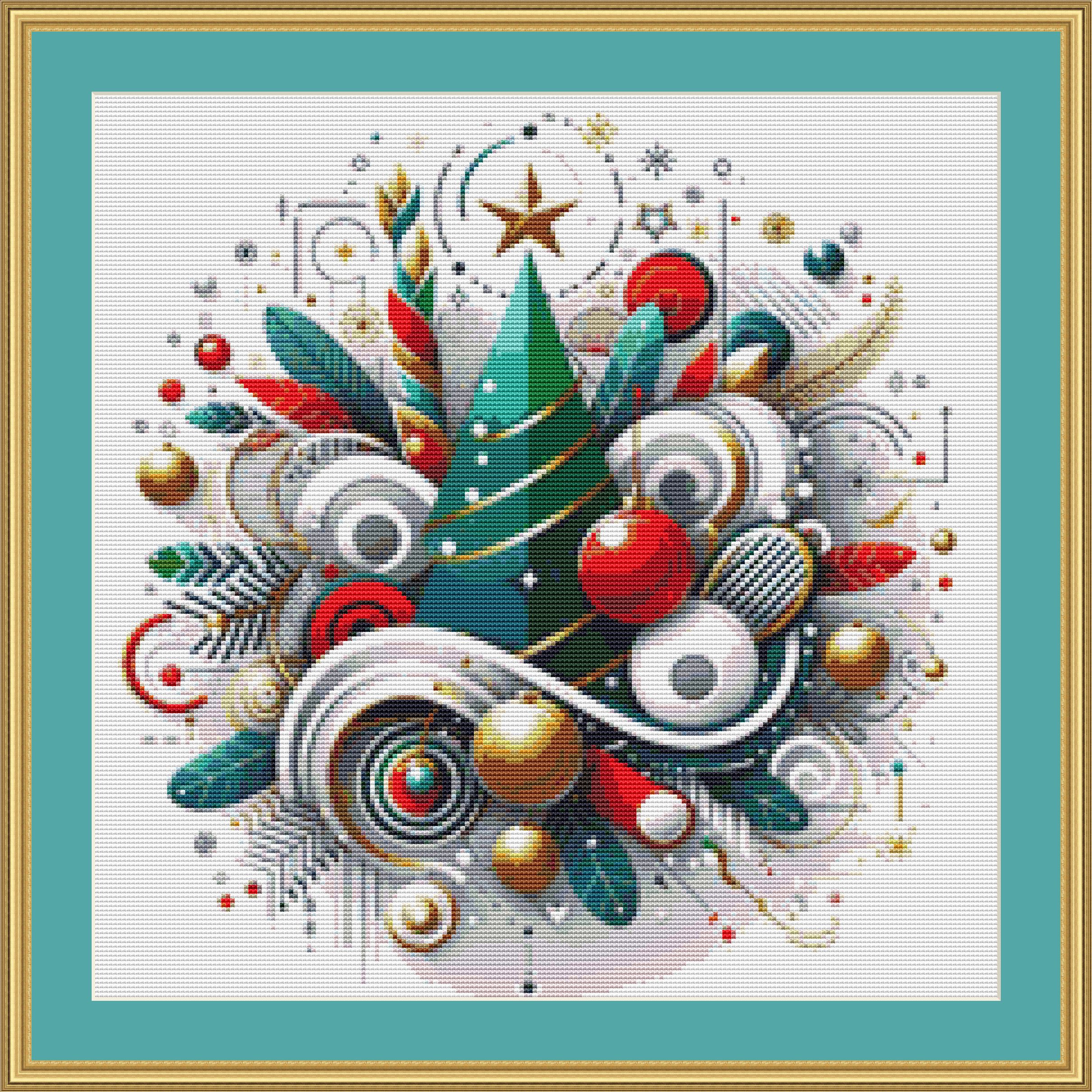 This cross stitch pattern depicts a picture of a modern design for Christmas.