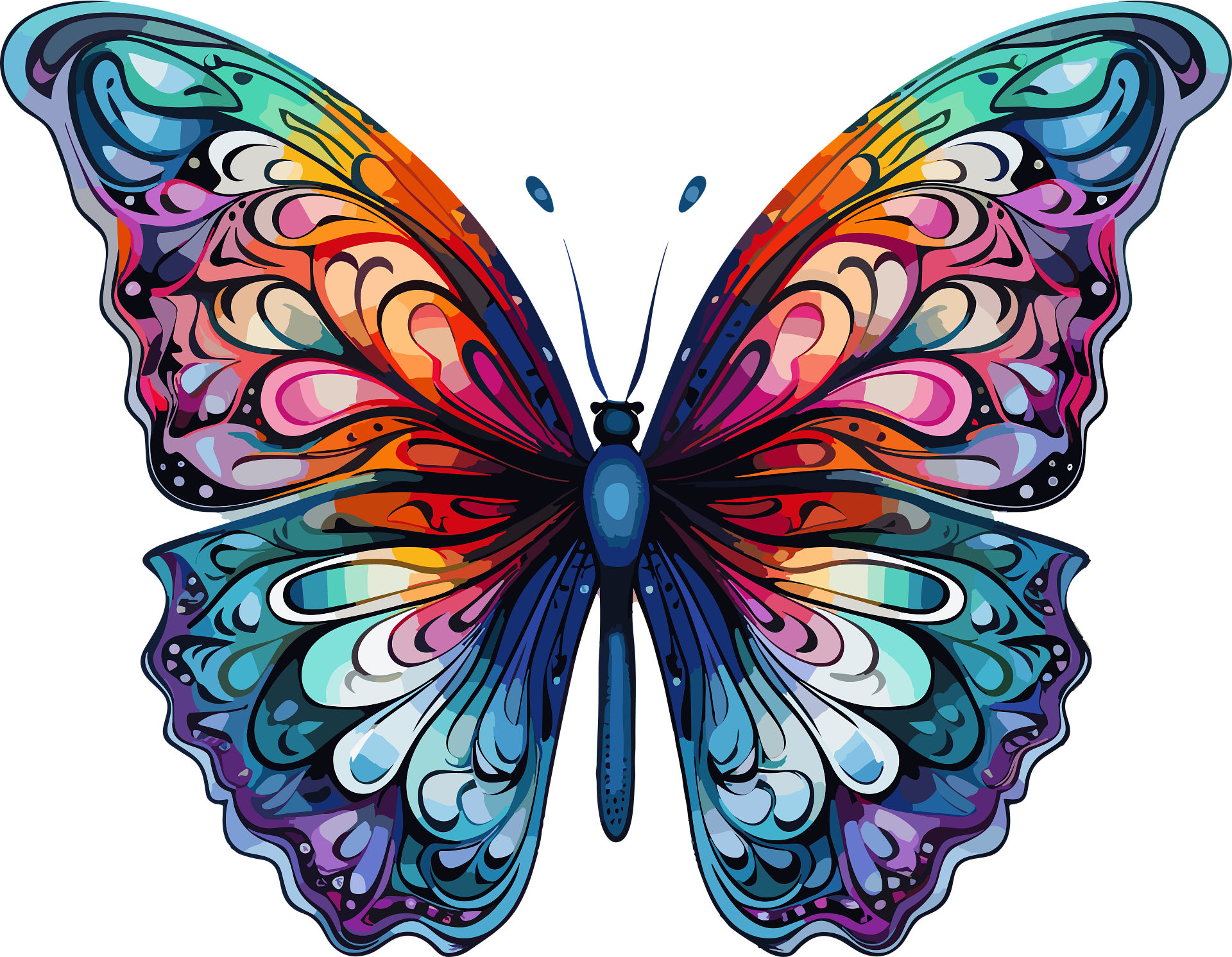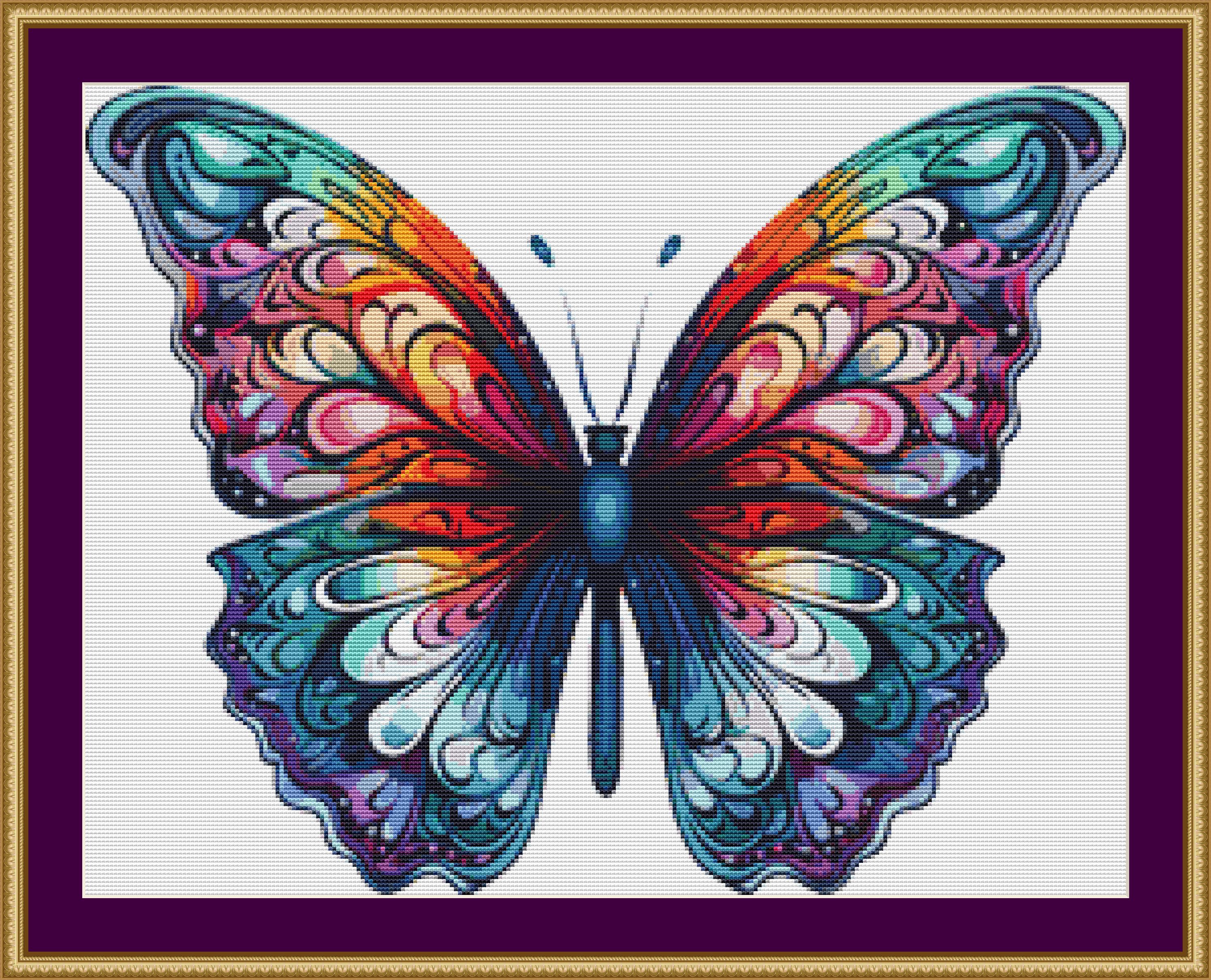 This cross stitch pattern depicts a picture of a colourful butterfly.
