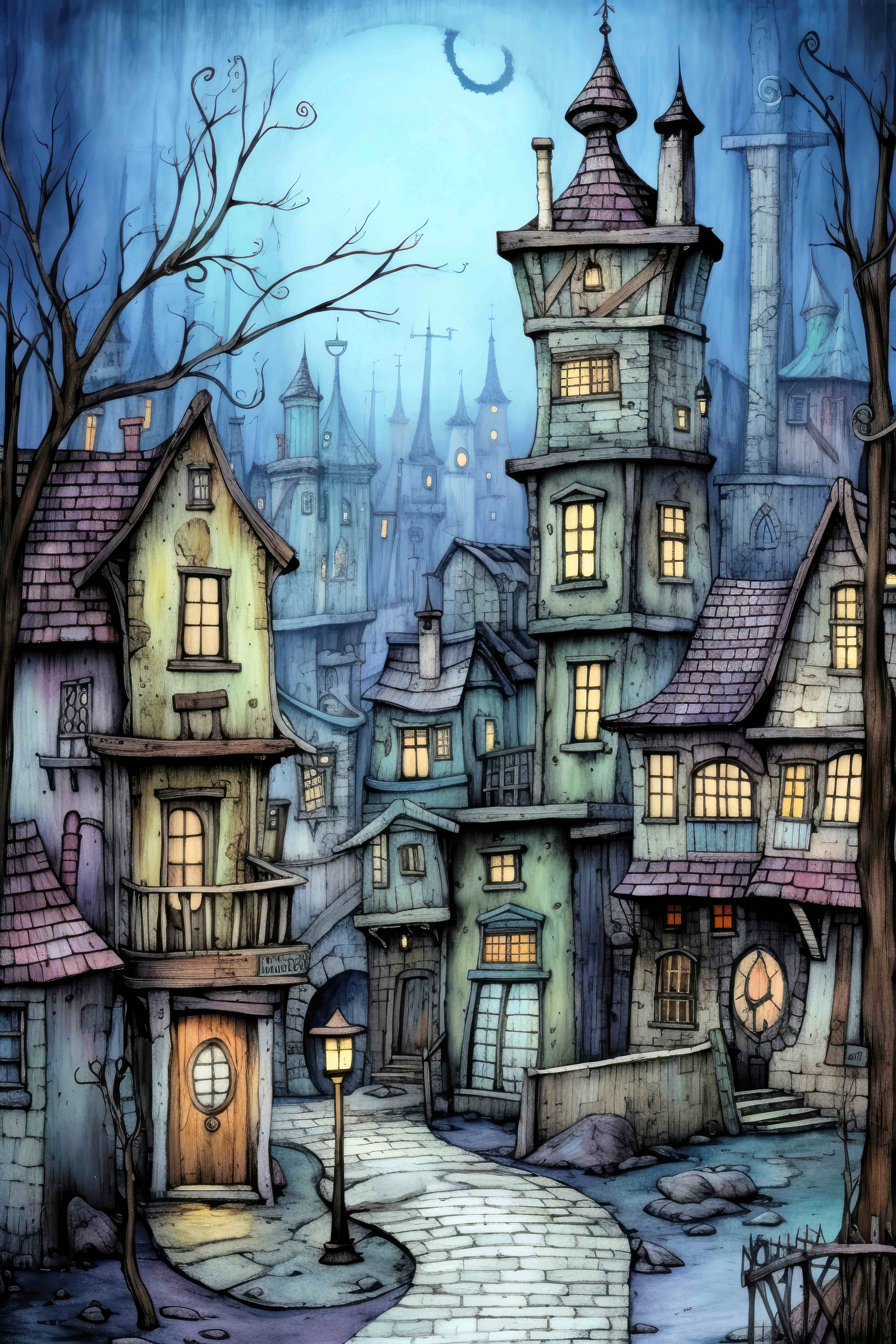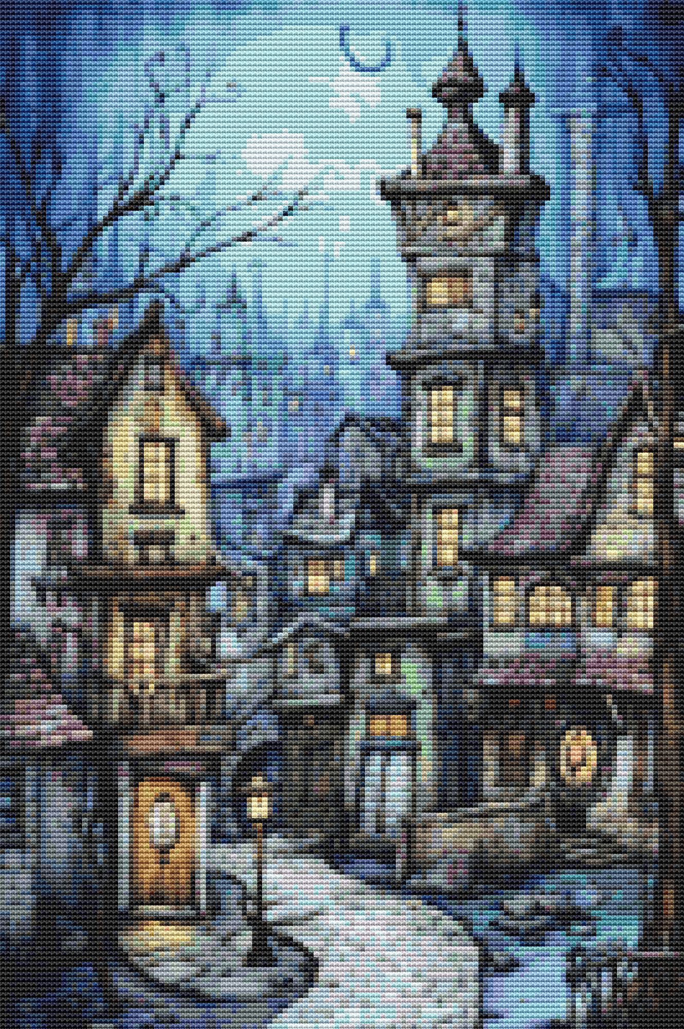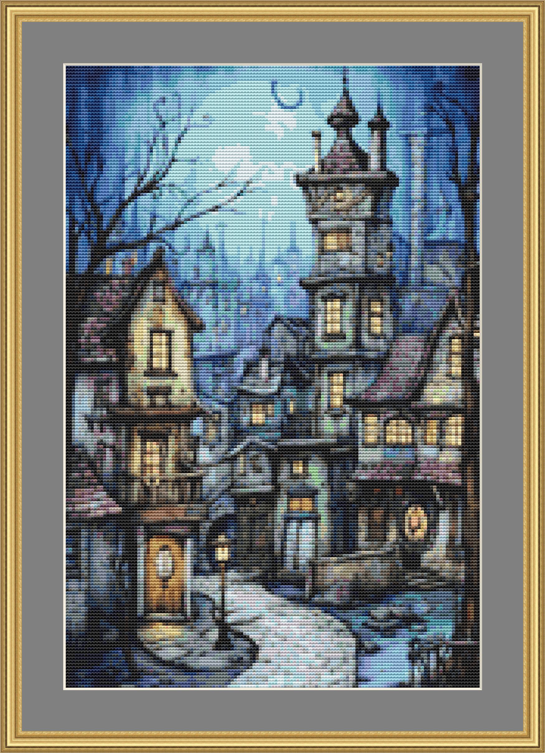 Gothic Houses Cross Stitch Pattern