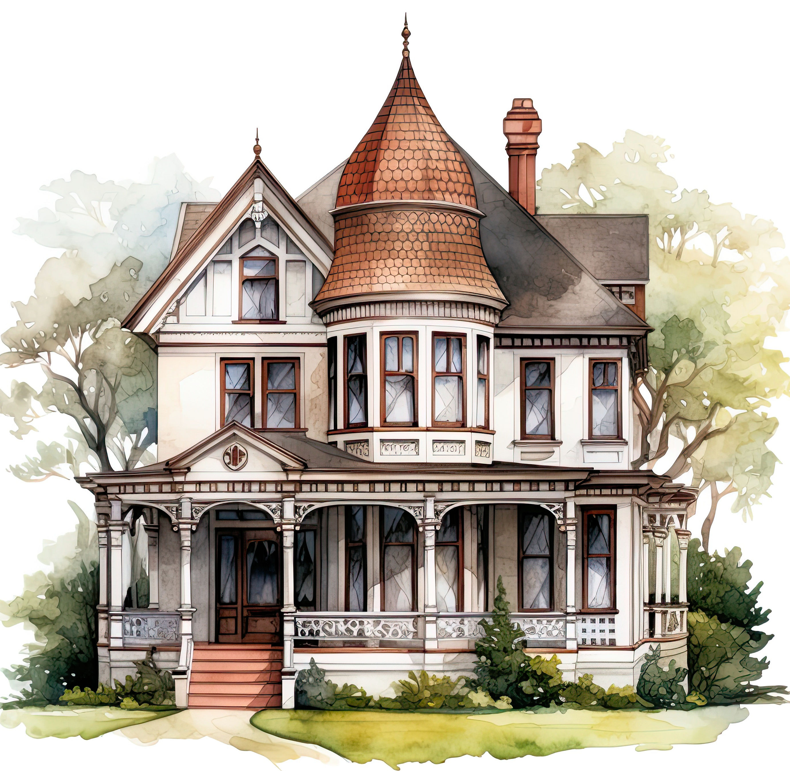This cross stitch pattern depicts a picture of a lovely veranda on the front of the house.