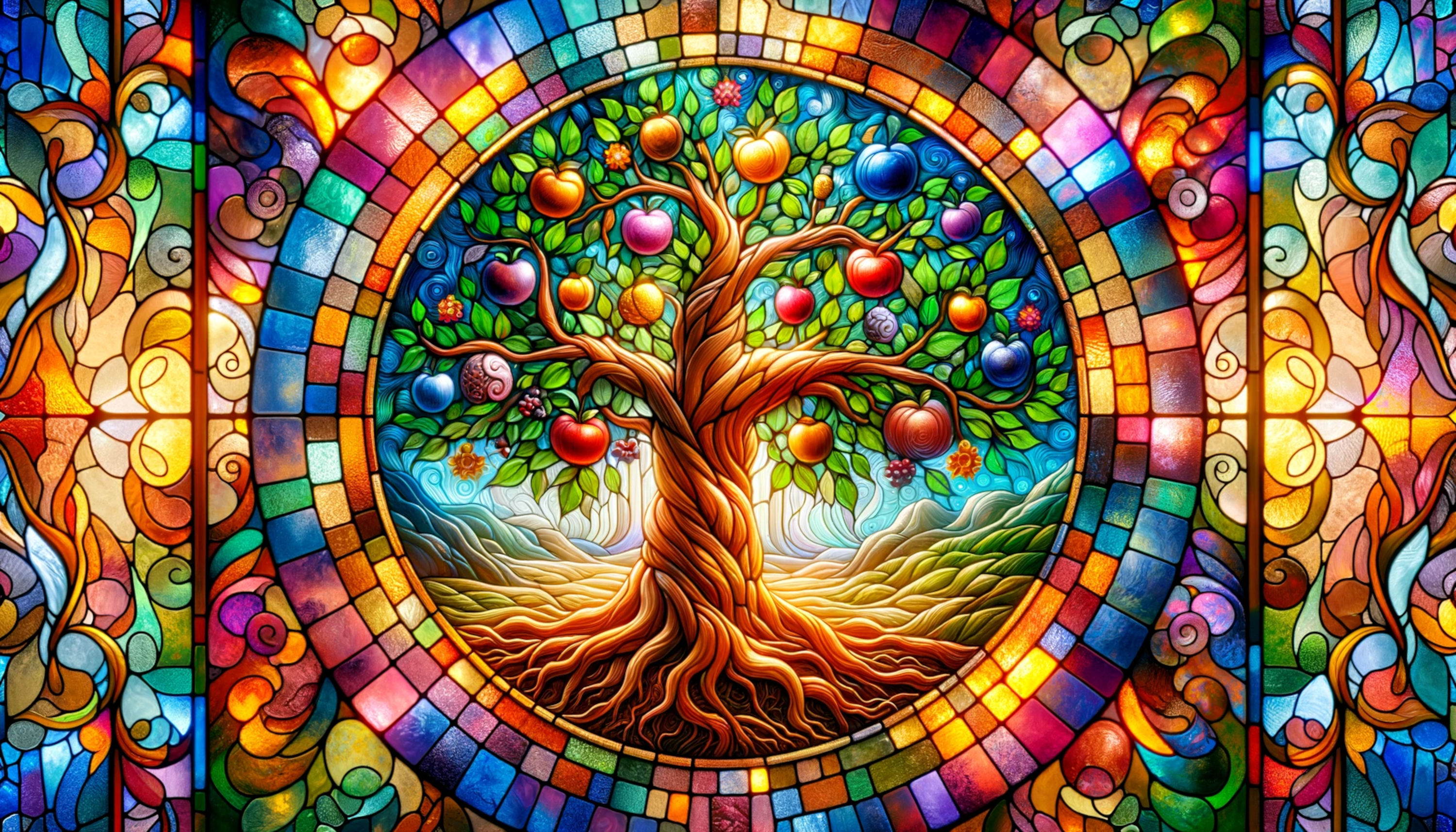 Stained Glass Apple Tree Cross Stitch Pattern