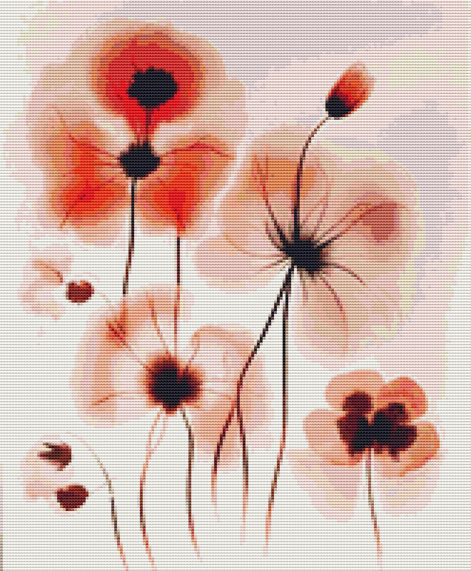 This cross stitch pattern depicts a picture of some beautiful flowers.