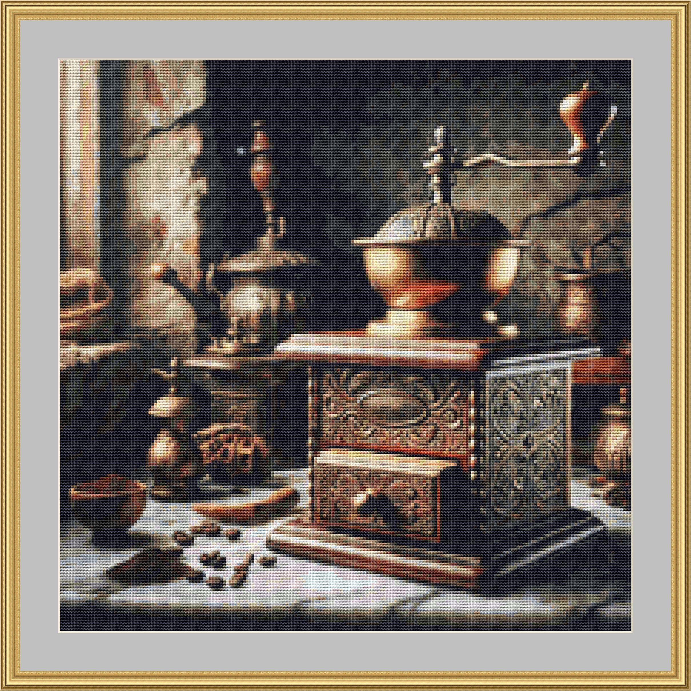 Cross Stitch Pattern Coffee Grinder.