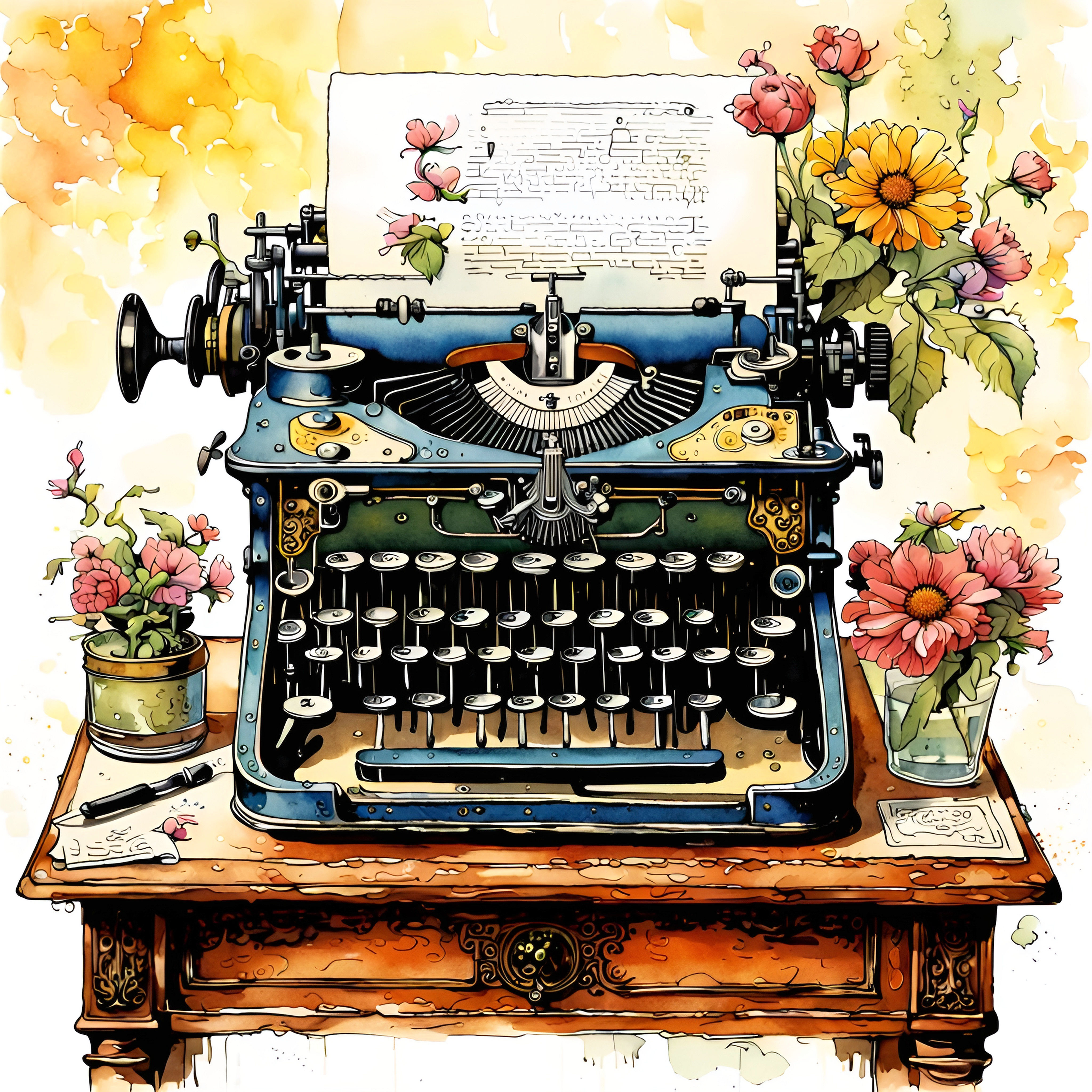 This cross stitch pattern depicts a picture of an old fashioned typewriter on a table.