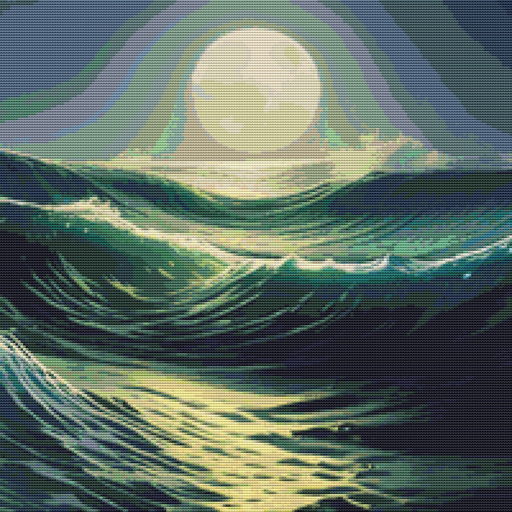 This cross stitch pattern depicts a picture of the beauty of the ocean.