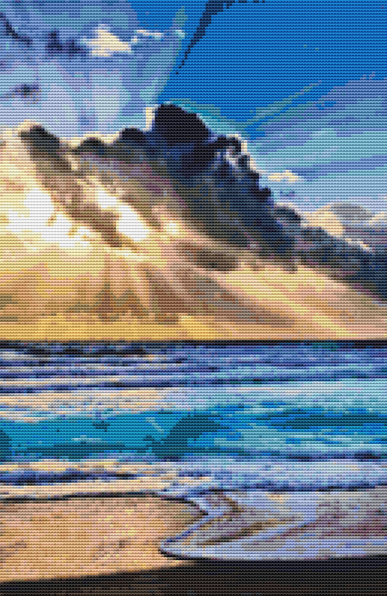 This cross stitch pattern of a beautiful sunrise from a beach.