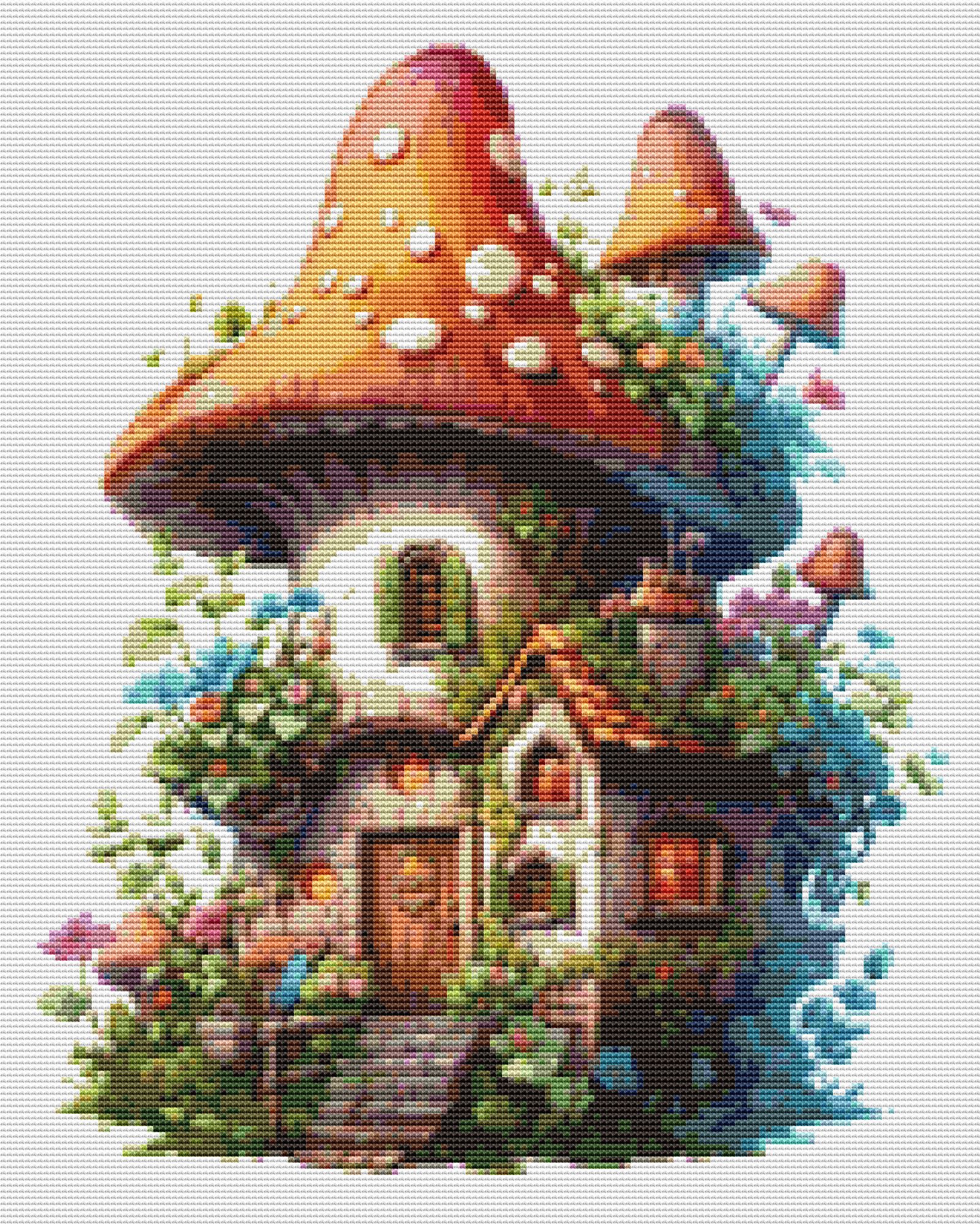 Cross Stitch Pattern Mushroom House.