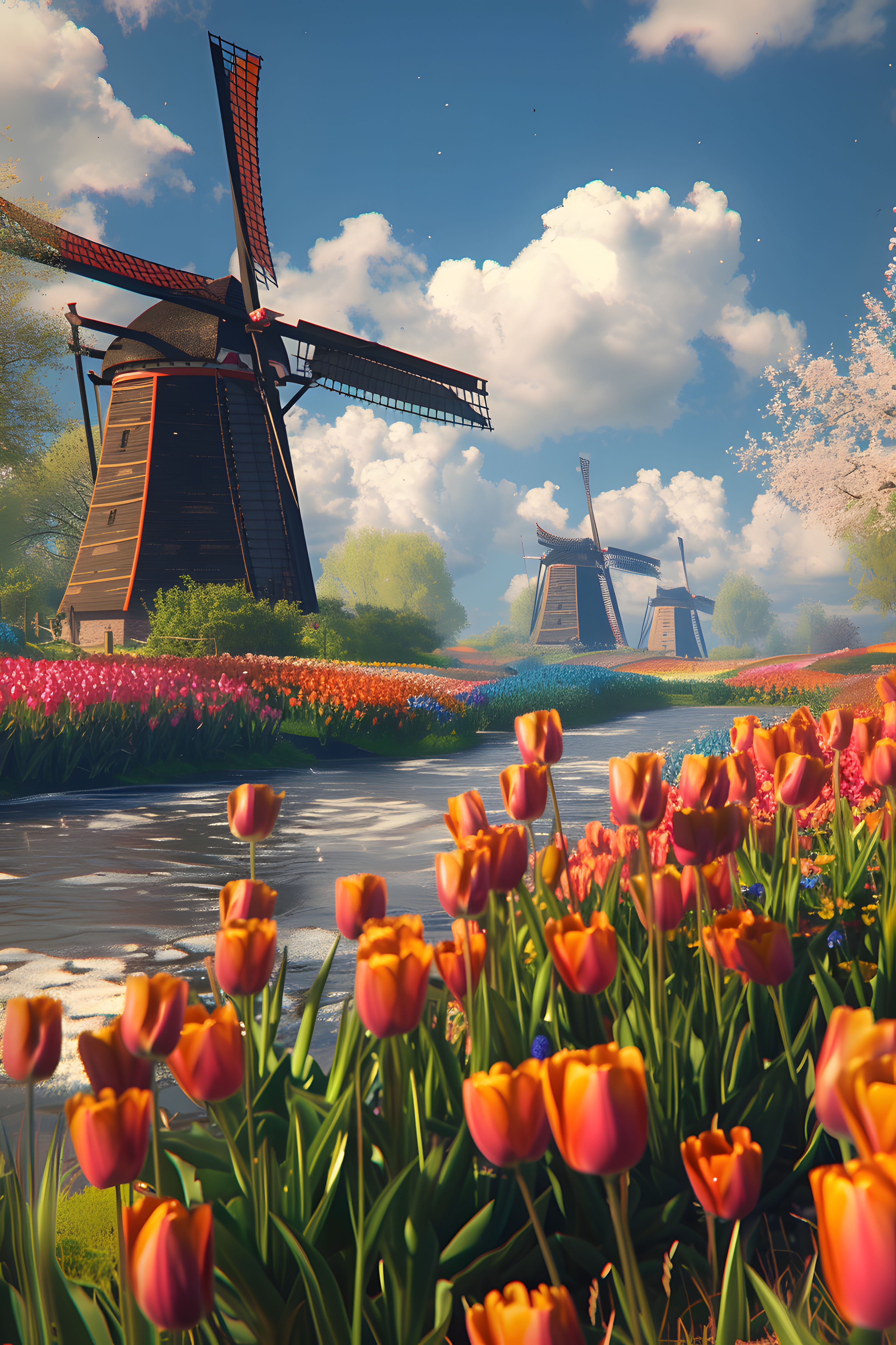 Tulips And Windmills Cross Stitch Pattern