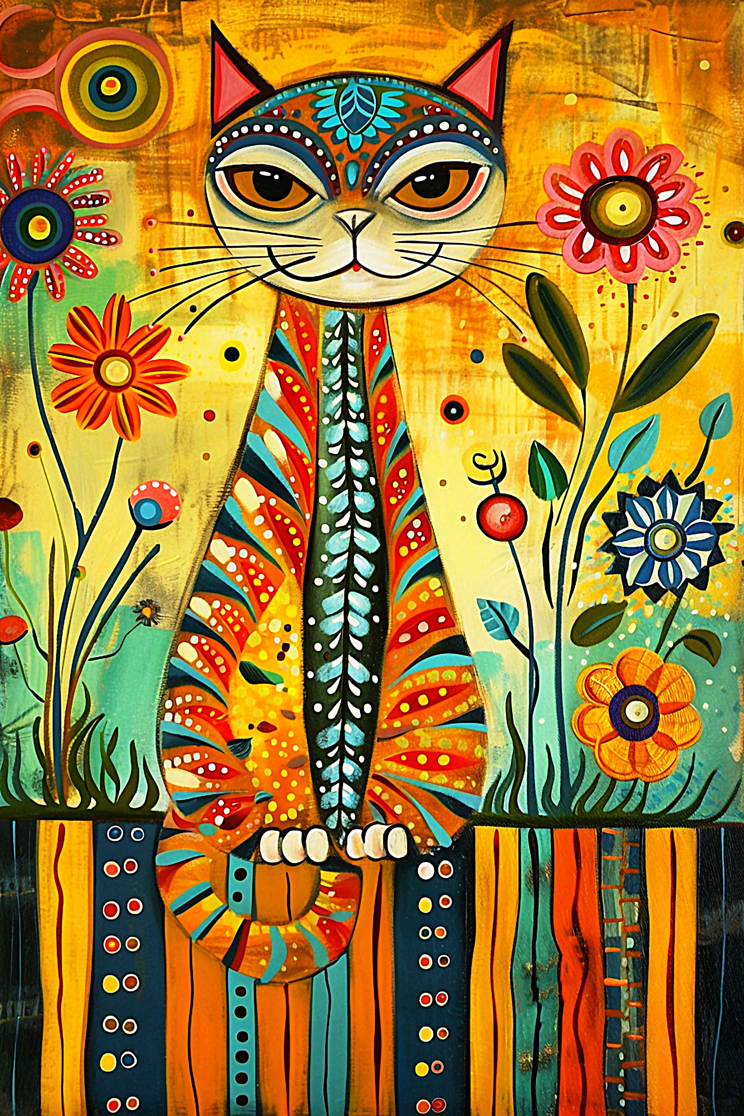 This cross stitch pattern depicts a picture of a colourful cat with a smile.