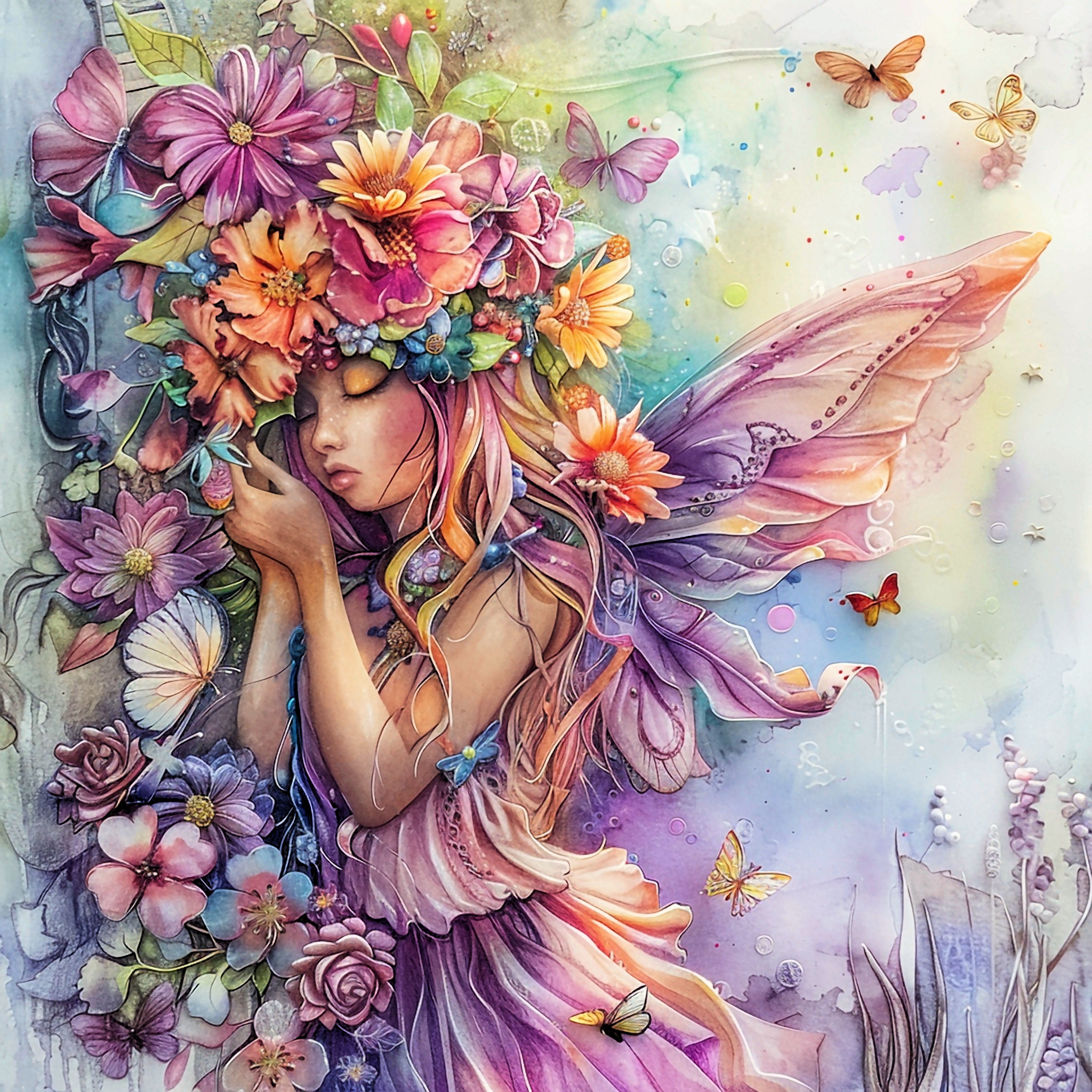 This cross stitch pattern depicts a picture of a pretty fairy.