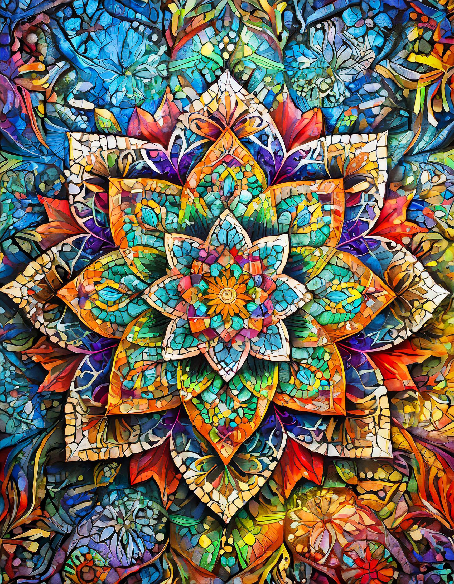 This cross stitch pattern depicts a picture of a mosaic pattern of a flower.