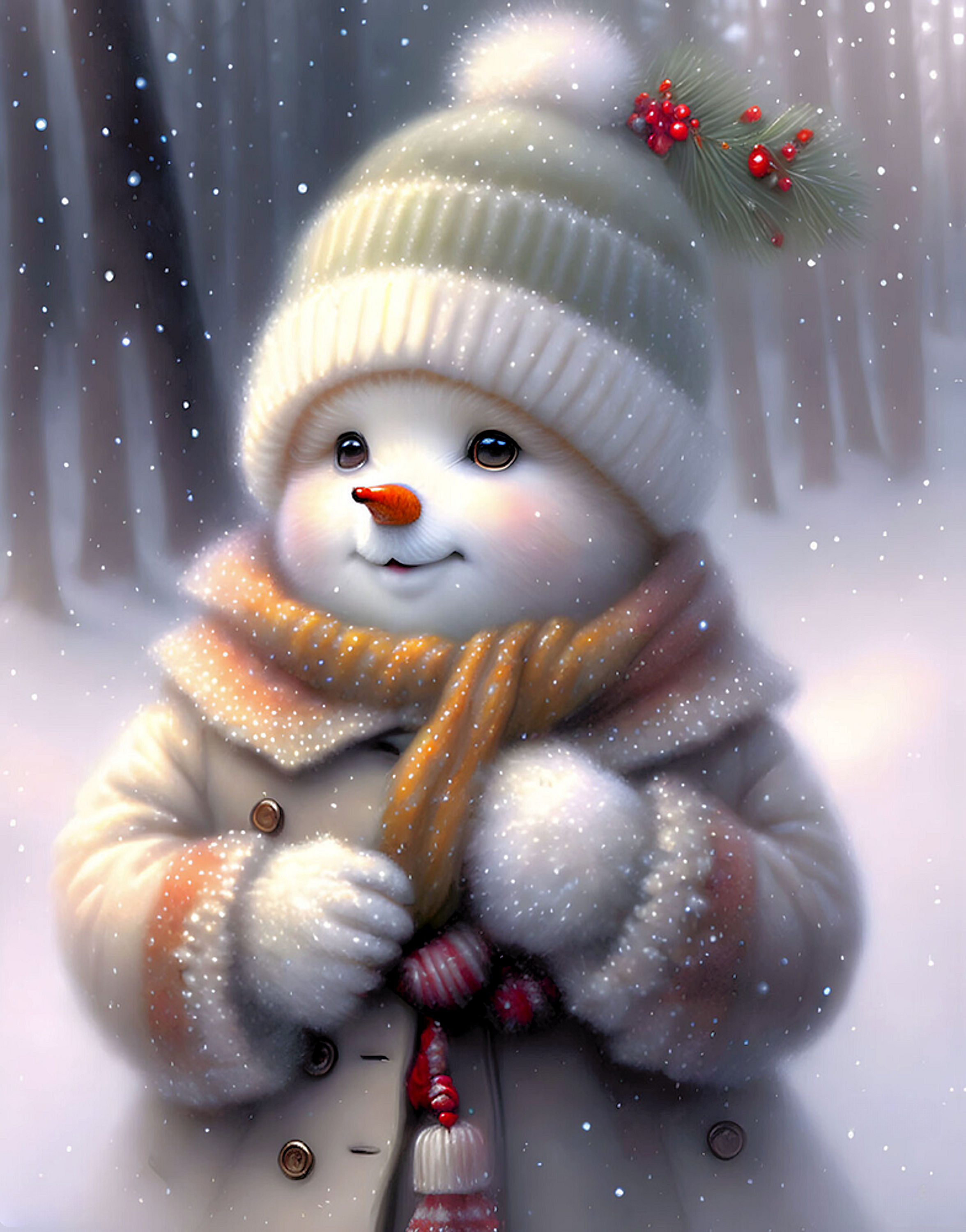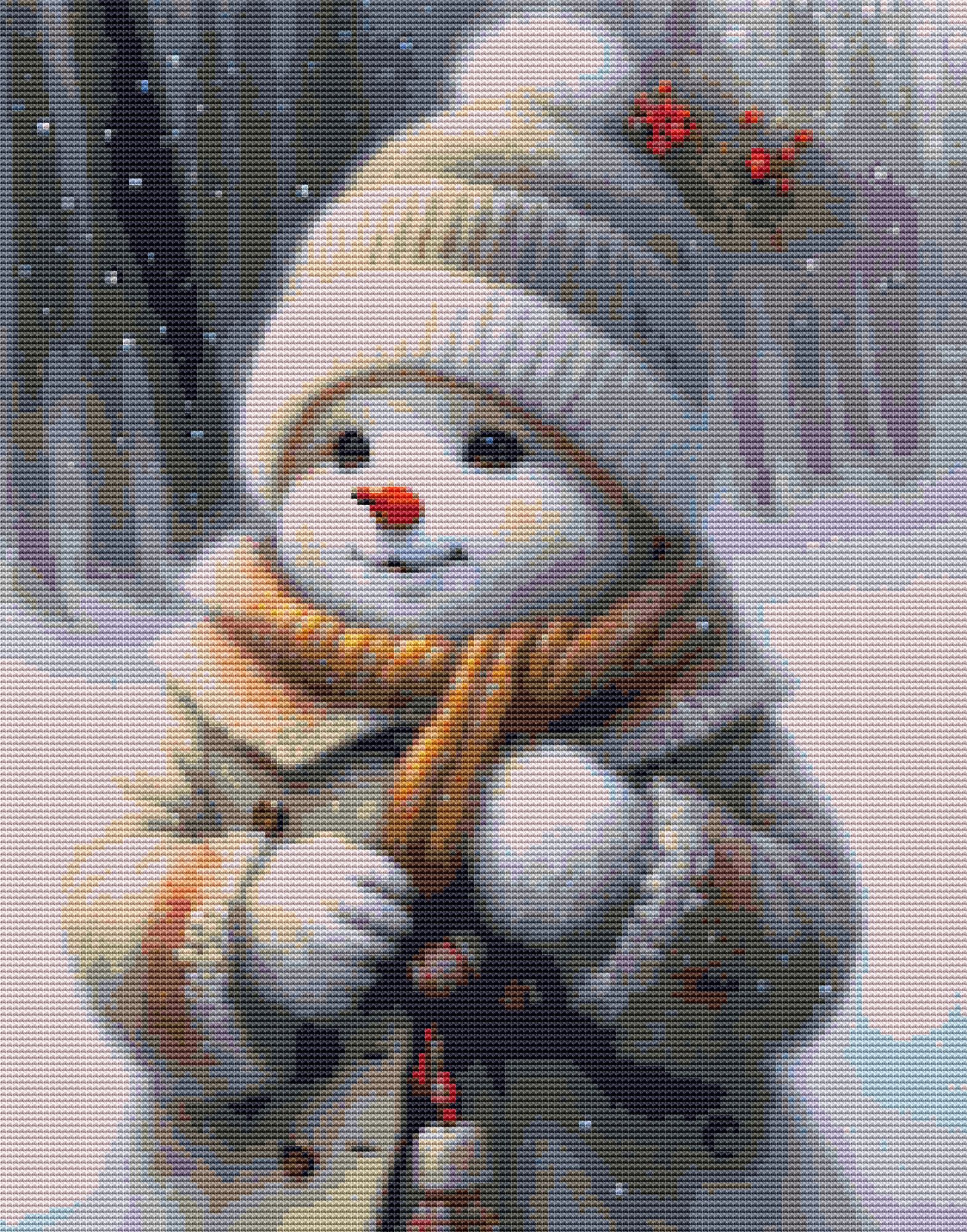This cross stitch pattern of a snowman dressed up for the winter weather.