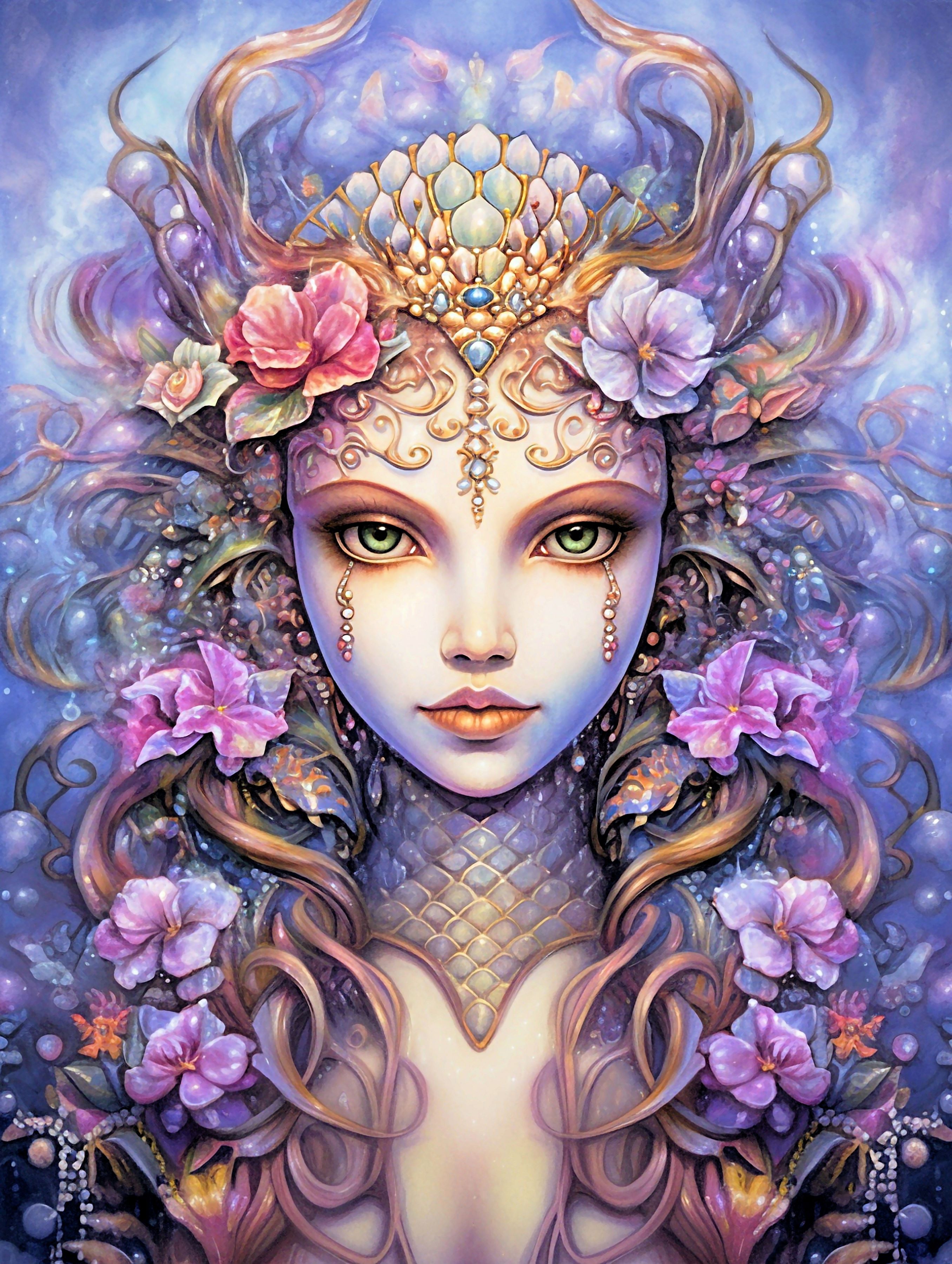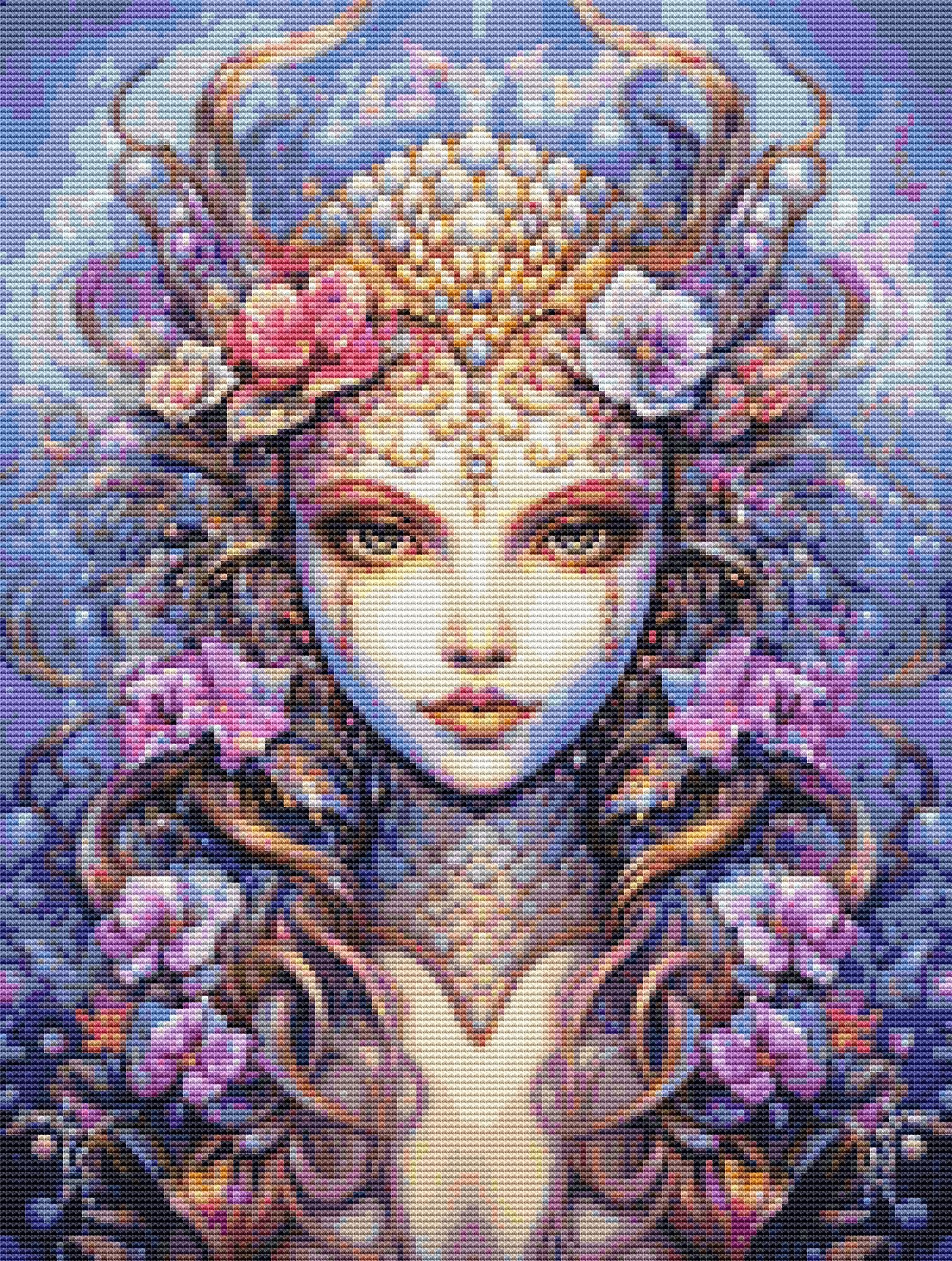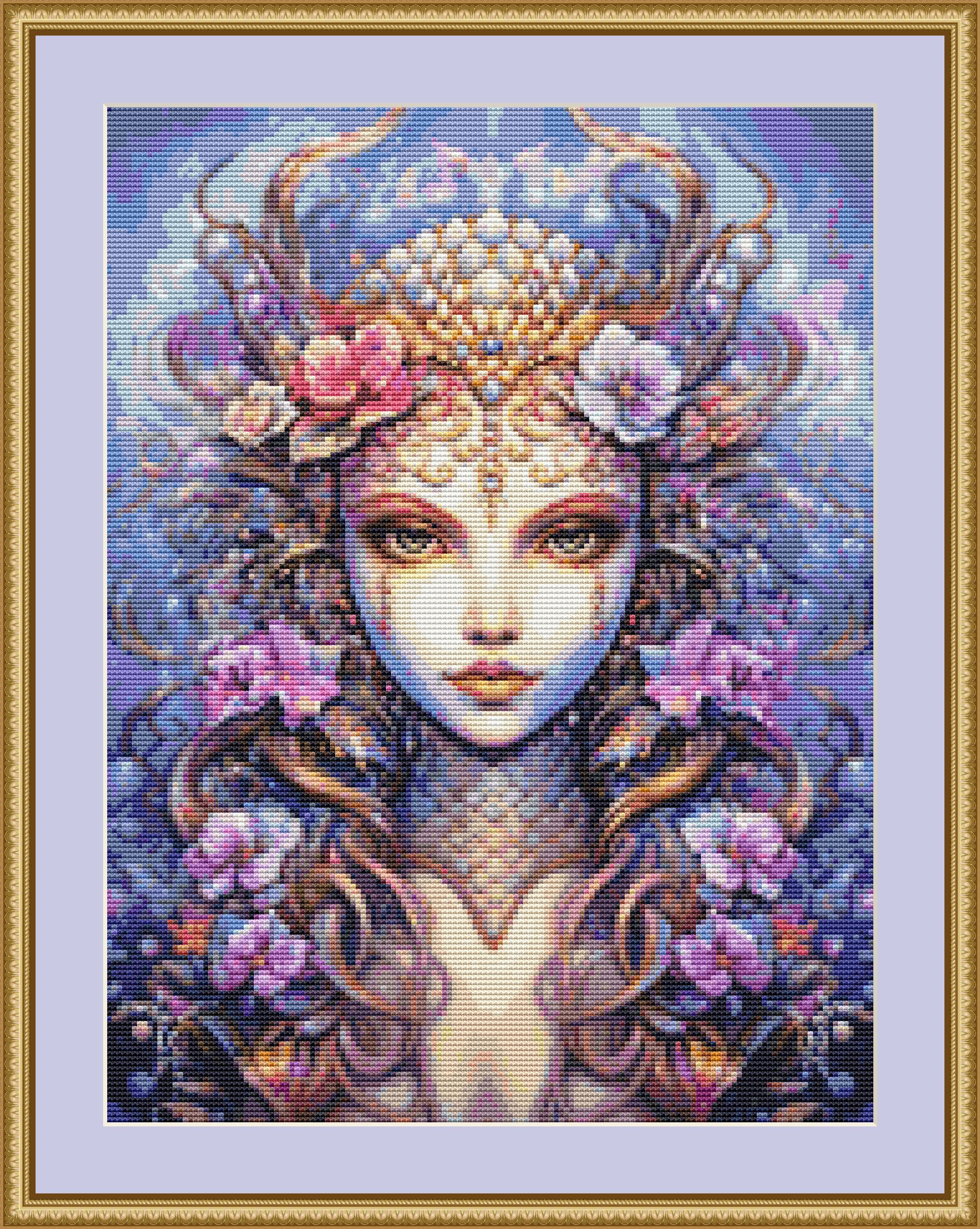 This cross stitch pattern of the face of a beautiful mermaid.