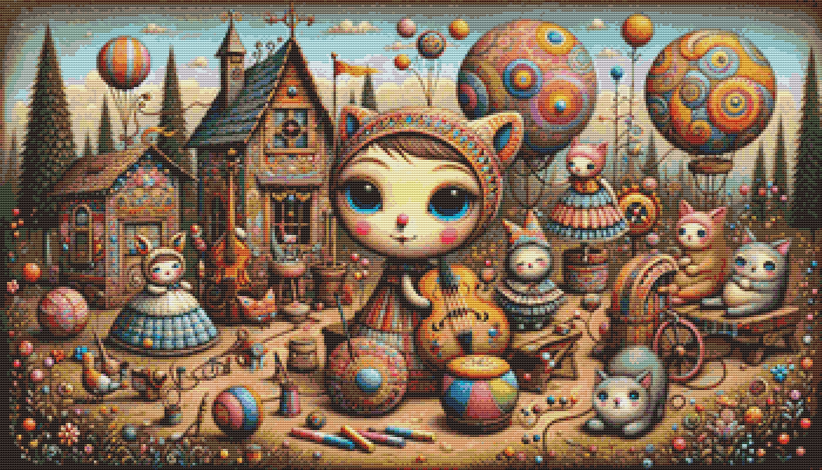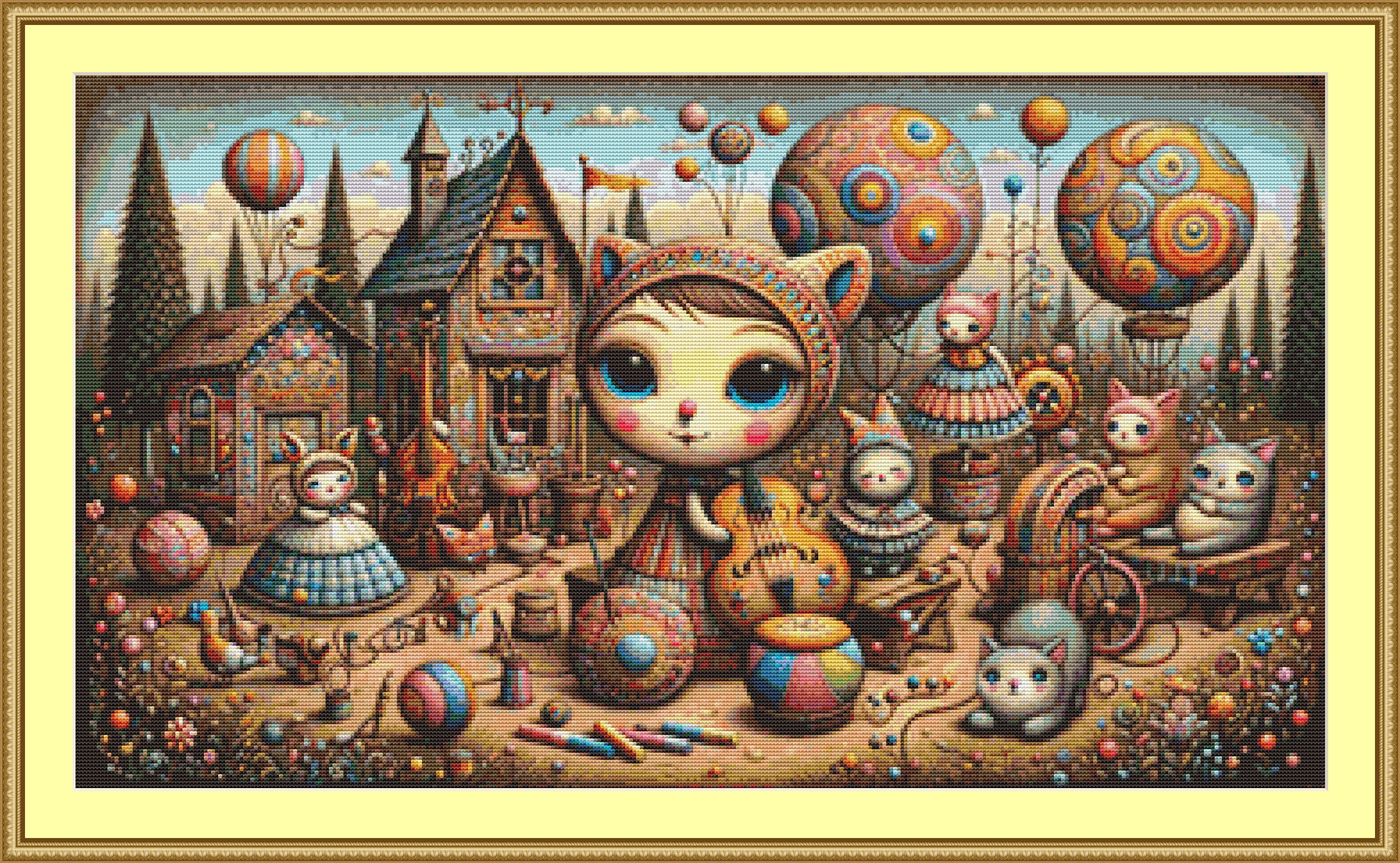 Whimsical Village Band Cross Stitch Pattern