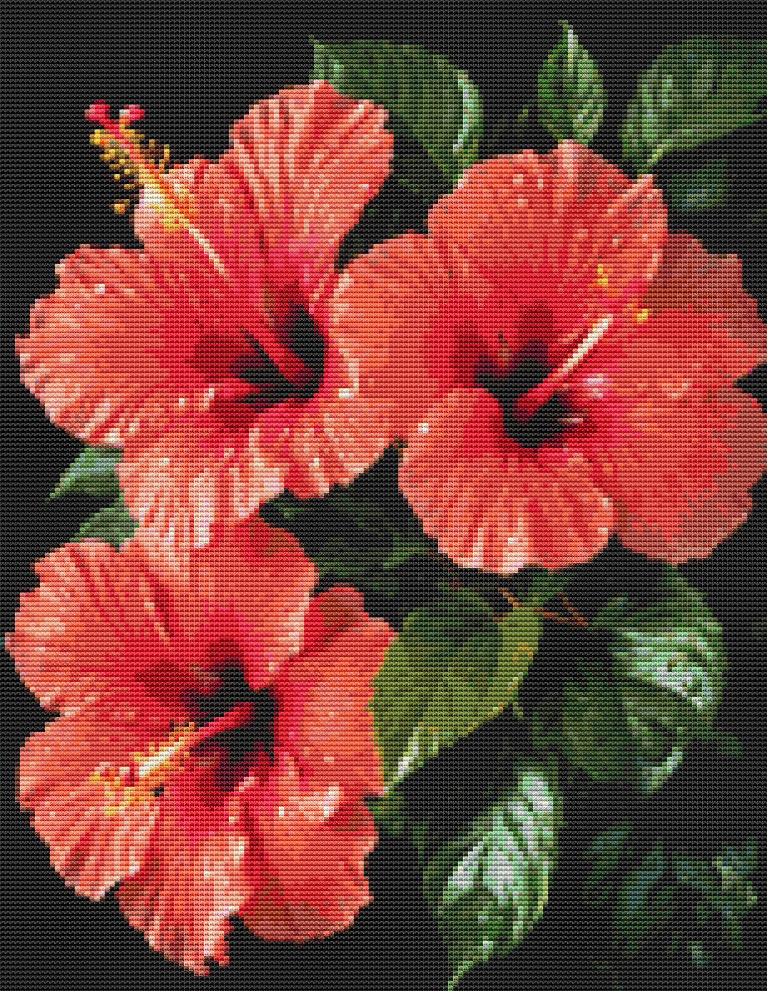 This cross stitch pattern of some beautiful orange hibiscus flowers.