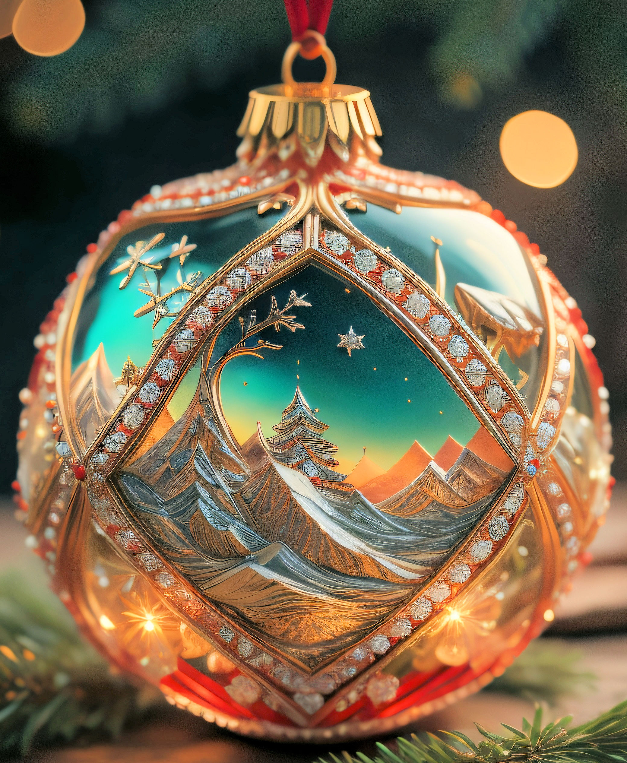This cross stitch pattern of an unusually elegant Christmas bauble.