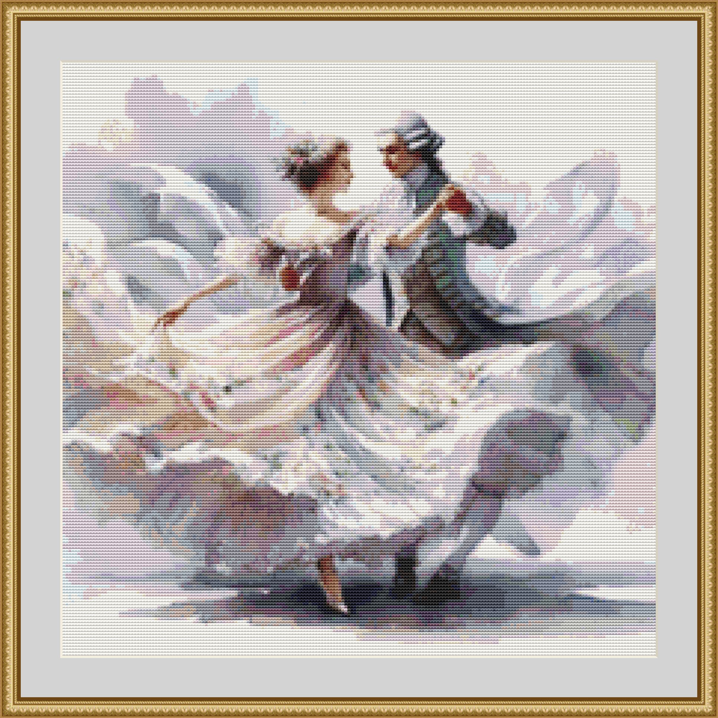 This cross stitch pattern of a beautiful old fashioned couple dancing together.